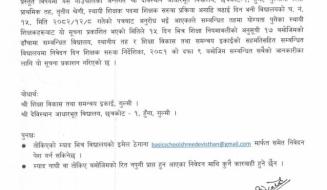 - विद्यालय अथवा/साथै सम्बन्धित निकायको निर्णय , सिफारिस