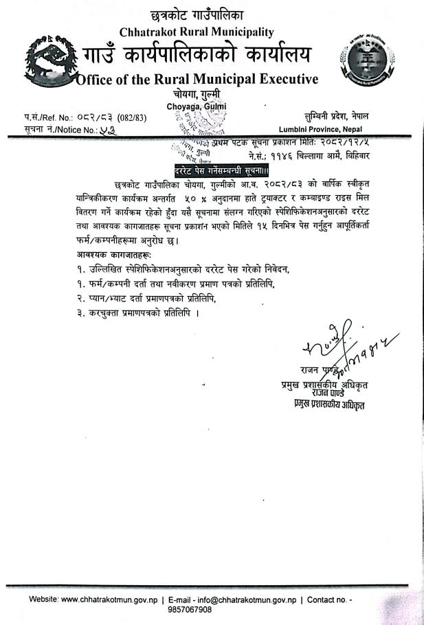 दररेट पेस गर्ने सम्बन्धी सूचना