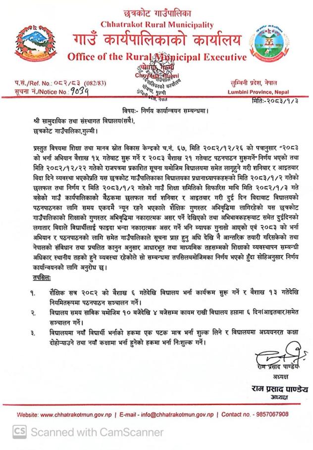 निर्णय कार्यान्वयन सम्बन्धमा ।