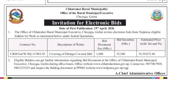 Invitation for Electronic Bid of Upgrading of Chandisthan Dandapokhari Maulipur Road Section