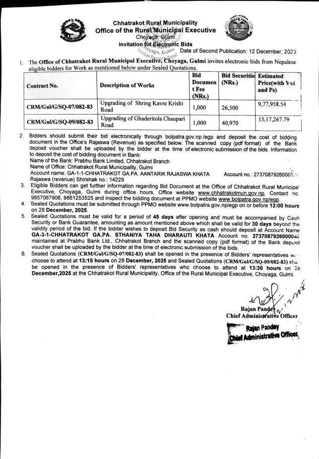 सार्वजनिक खरिद/बोलपत्र सूचना