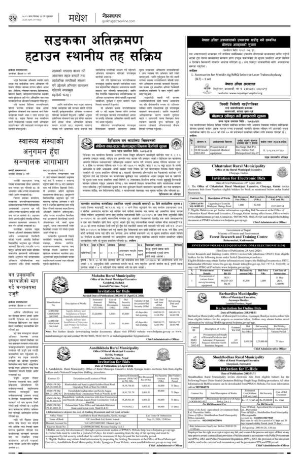 Invitation for Eldectronic Bids of Supply and Delivery of Medicine and Surgical Items for Shringa PHC (2nd Phase)