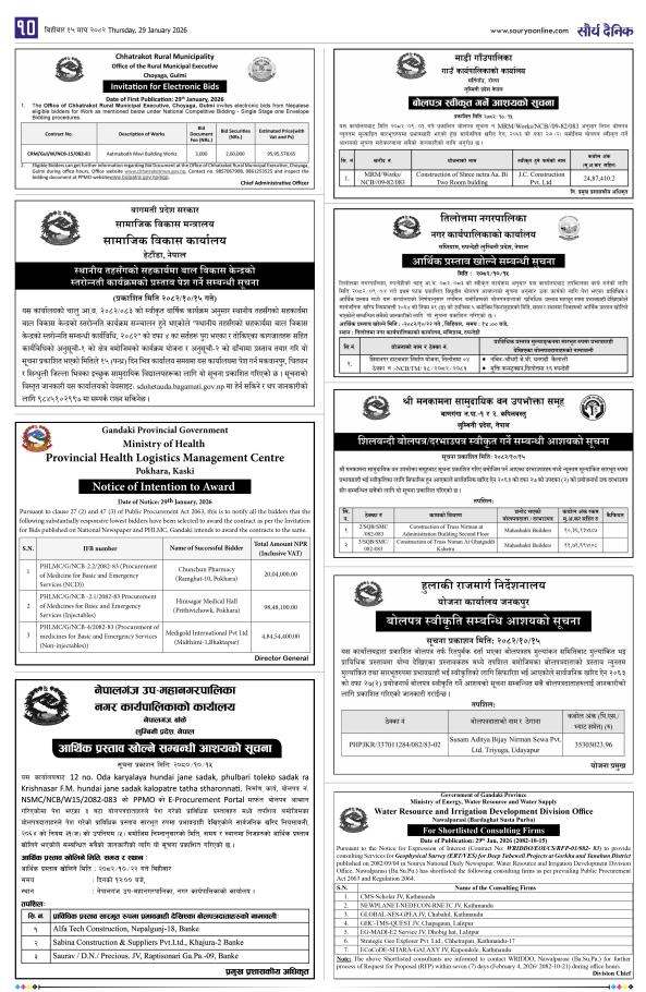 सार्वजनिक खरिद/बोलपत्र सूचना