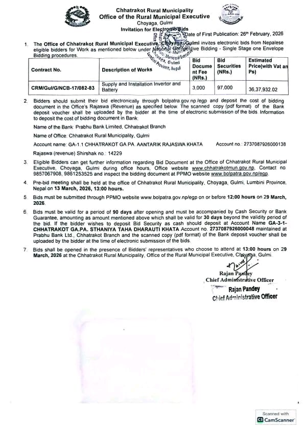 सार्वजनिक खरिद/बोलपत्र सूचना