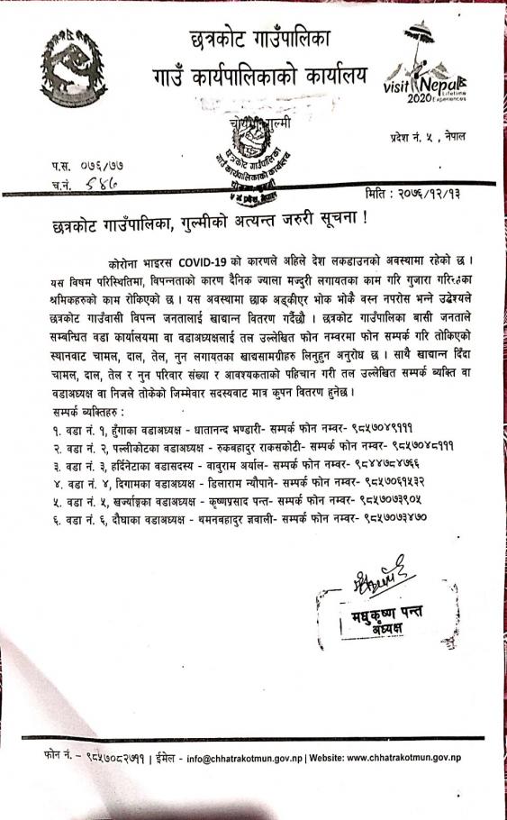 छत्रकोट गाउँपालिका गुल्मीको अत्यन्त जरुरी सूचना