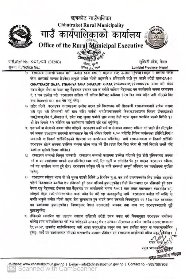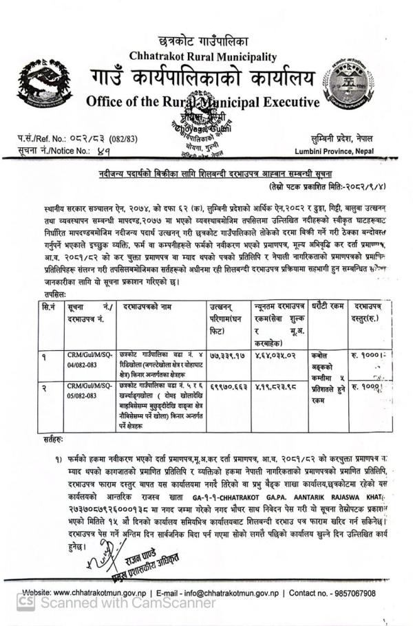 नदिजन्य पदार्थको बिक्रीका लागि शिलबन्दी दरभाउपत्र आह्वान सम्बन्धी सूचना !!!