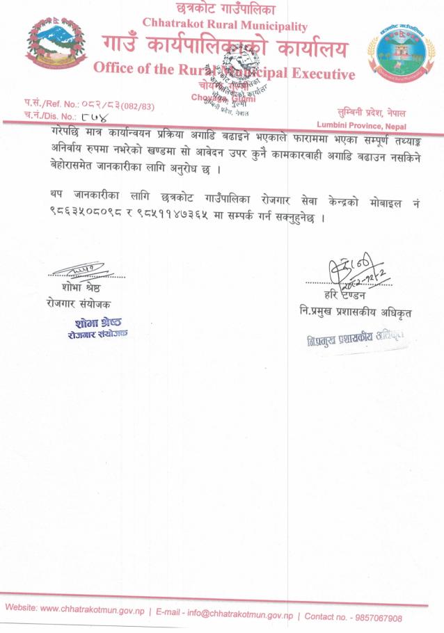 तहवृद्धिका लागि आवेदन फाराम पेस गर्ने सम्बन्धी सूचना !!!