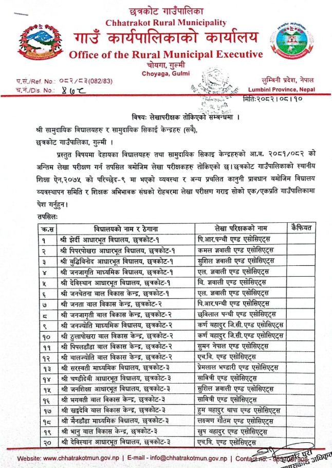 » लेखा परिक्षक तोकिएको सम्बन्धमा।
