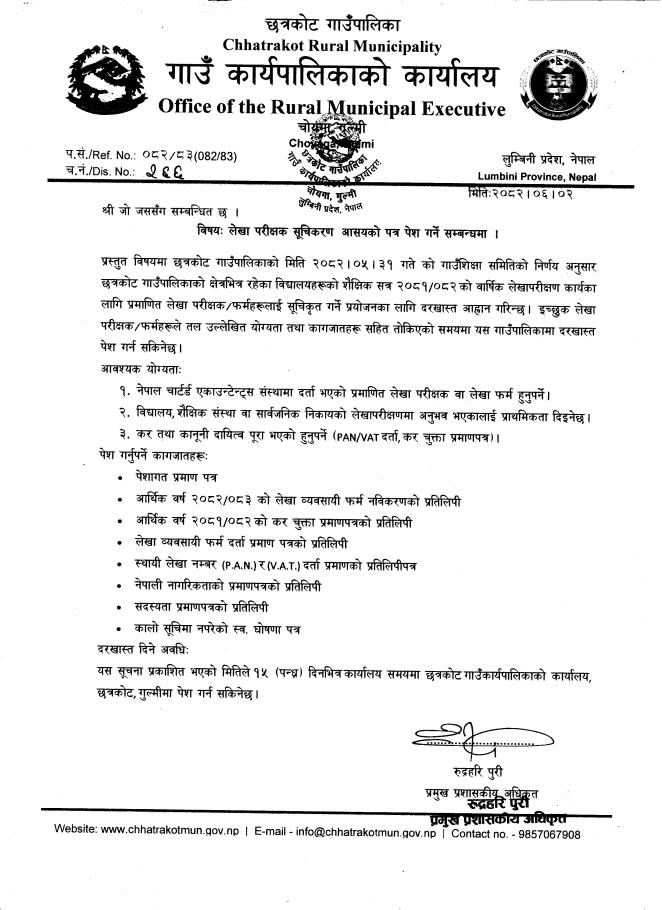 लेखा परीक्षक सूचिकरण सम्बन्धमा !!!