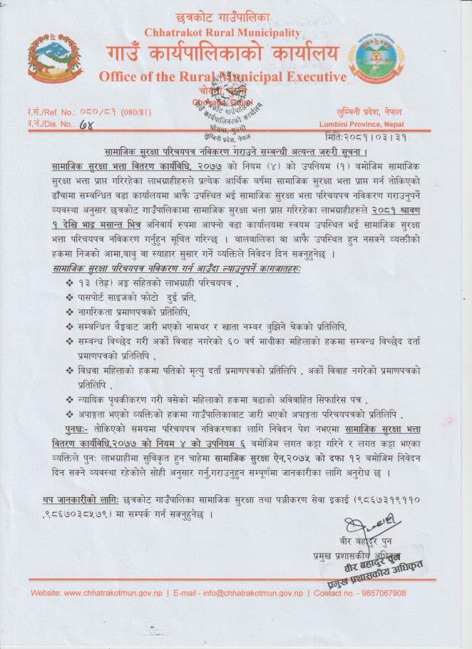 » सामाजिक सुरक्षा परीचयपत्र नविकरण गराउने सम्बन्धी अत्यन्त जरुरी सूचना