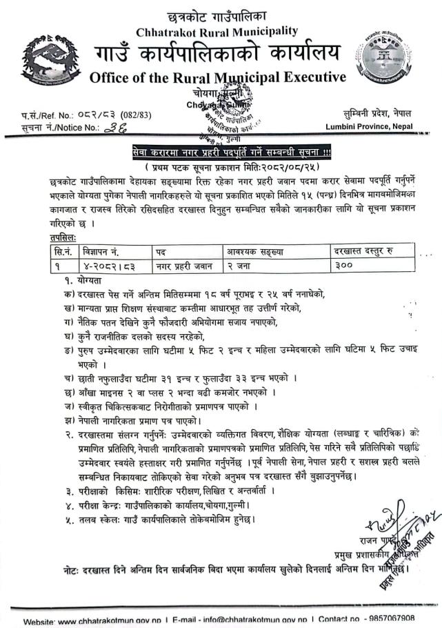 सेवा करारमा नगर प्रहरी पदपूर्ति गर्ने सम्बन्धी सूचना !!!