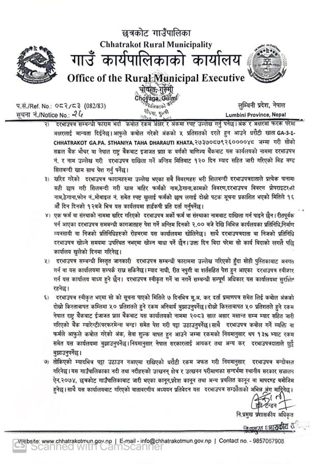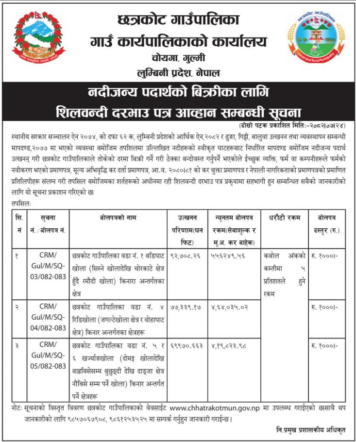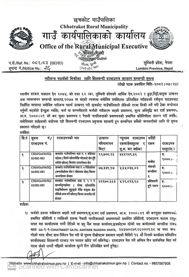 २०८२ कात्तिक २४ गते बुटवल टुडेमा प्रकाशित नदीजन्य पदार्थको बिक्रीका लागि शिलबन्दी दरभाउपत्र आव्हान सम्बन्धी सूचना !!!!