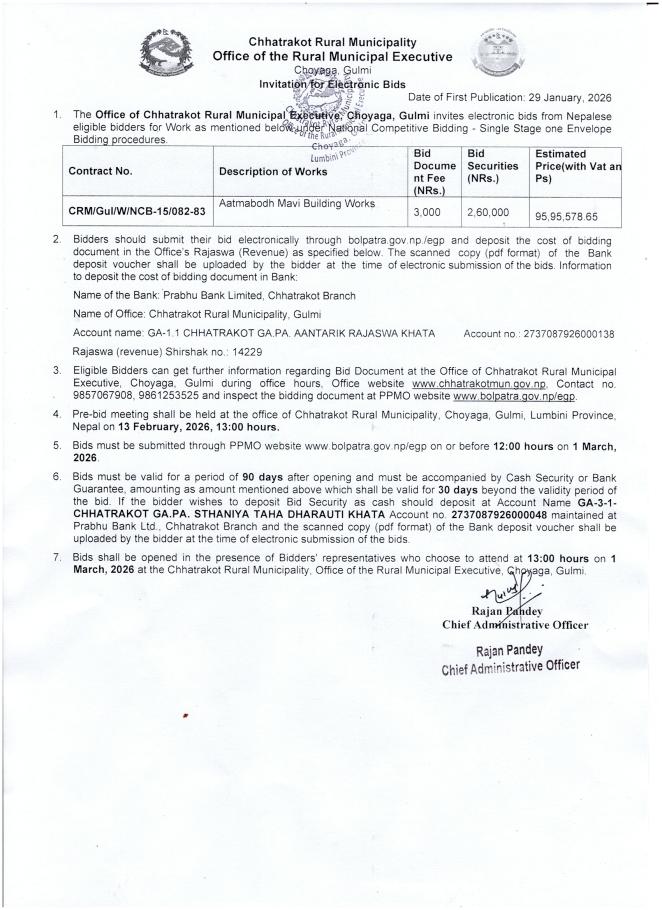 Invitation For Electronic Bids of Aatmabodh Mavi Building Works.