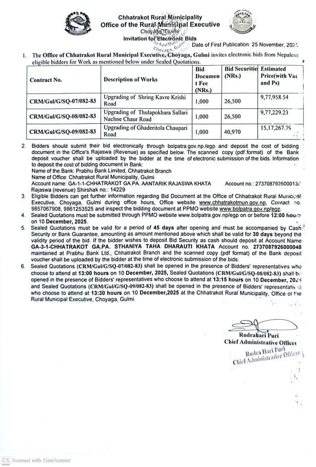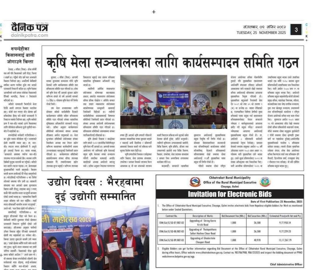 » Invitation for Electronic Bids. Date of first Publication:- 25 November, 2025 on Dainikpatra .