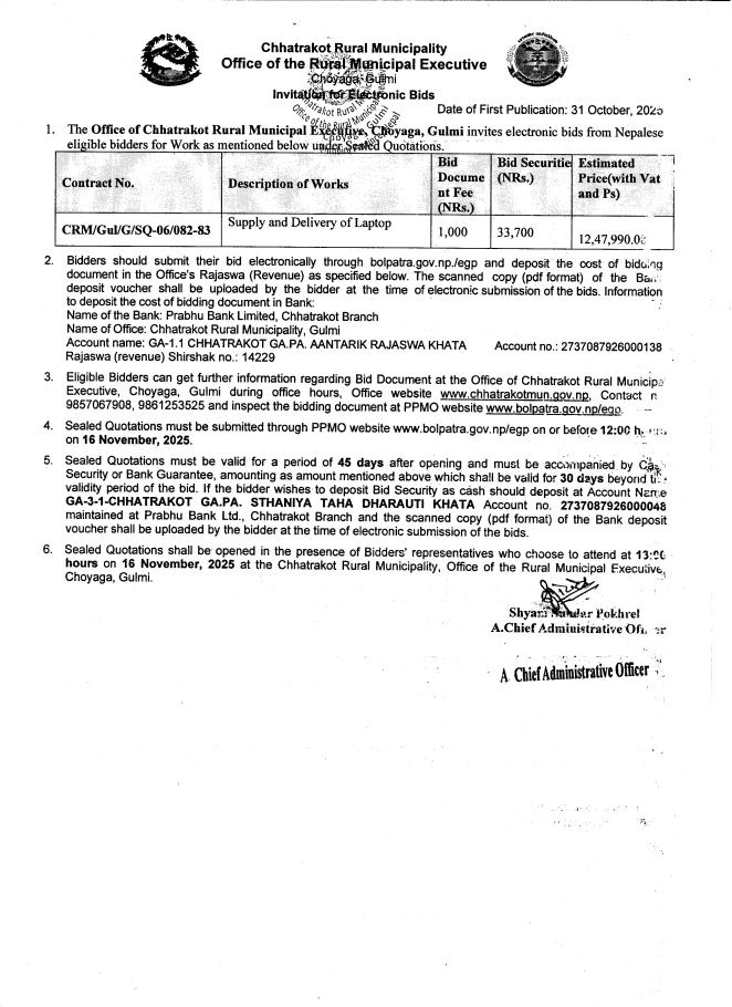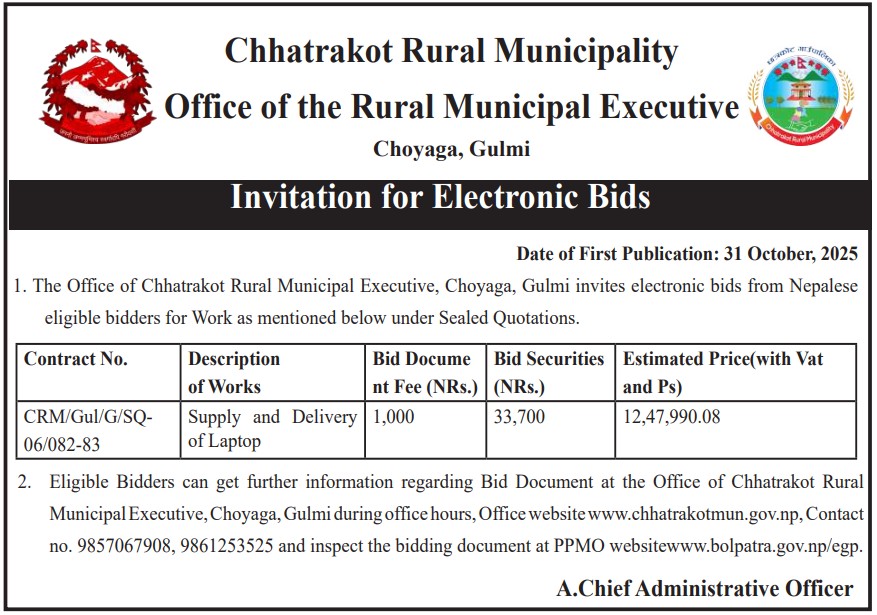 सार्वजनिक खरिद/बोलपत्र सूचना