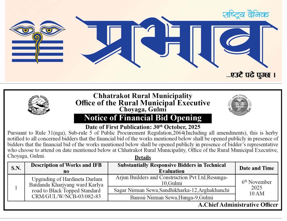 सार्वजनिक खरिद/बोलपत्र सूचना